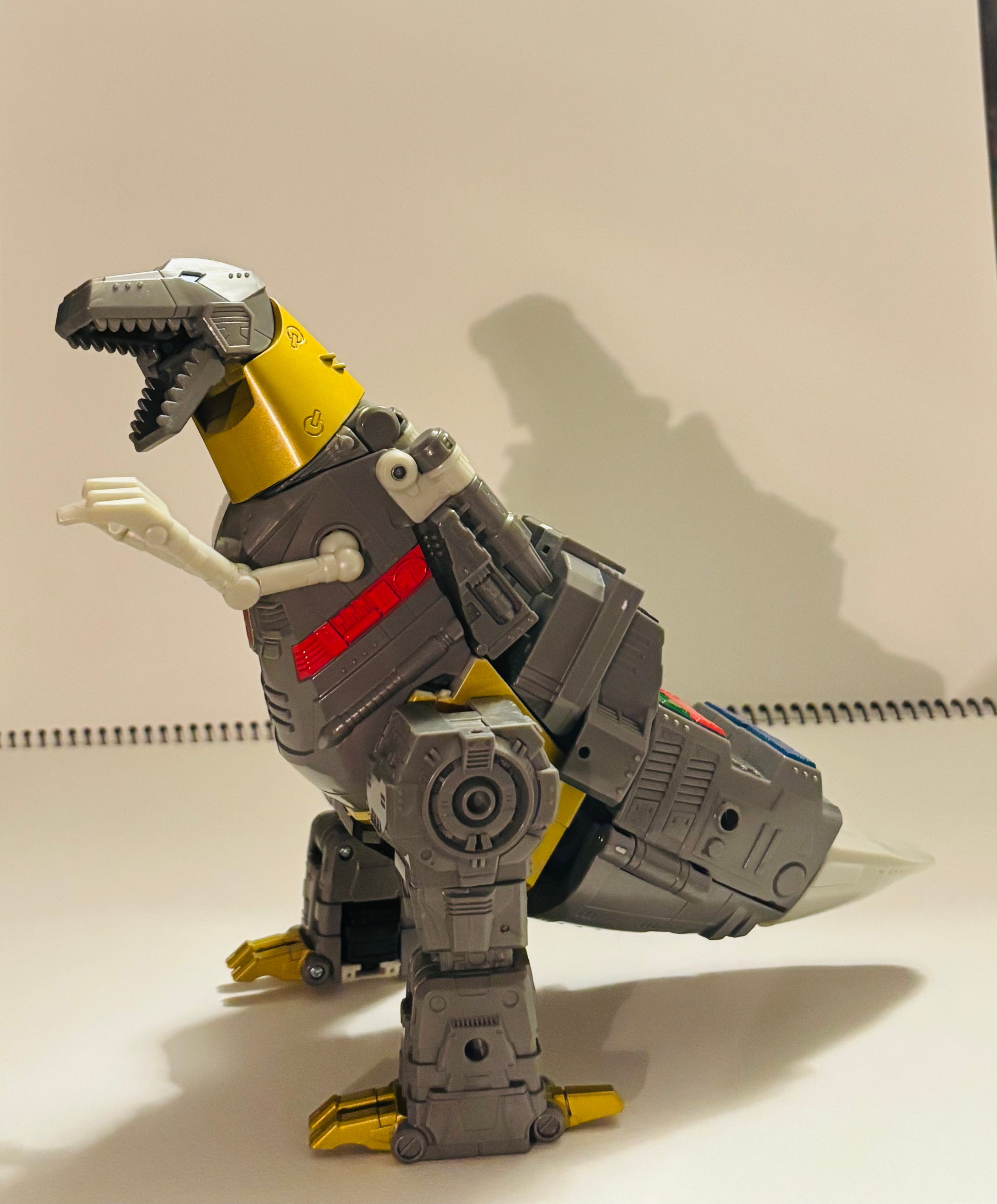 The tyrannosaurus rex was named Grimlock. And he was the coolest toy ever. He was like the Faberge Egg, the Antkythera Mechanism and the Laocoon wrapped up in one. I never owned it as a kid.